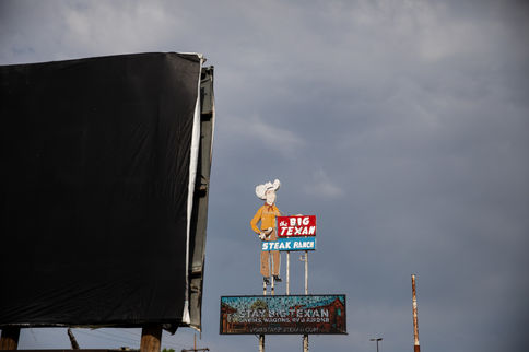I began photographing them over four years of traveling. At first, I dismissed them as visual noise, repetitive, teasing, impossible to ignore. But somewhere between the drive-thru and the cross, something deeper began to speak.